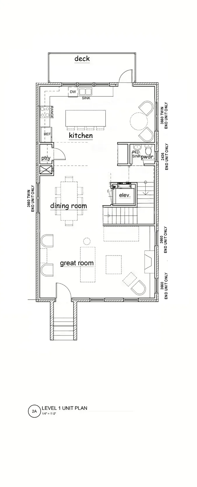- Open kitchen with coffee bar, breakfast nook, and spacious deck.
